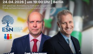 Der Berliner MSF-Repräsentant, Frank Schermesser (MdA) lädt am 20.05.2025  Stefan Keuter (MdB) zum Vortragsabend ein. Diskutiert werden die außenpolitischen Herausforderungen für die deutsche Wirtschaft. Anmeldungen senden Sie bitte an: frank.scheermesser@mittelstandsforum.berlin