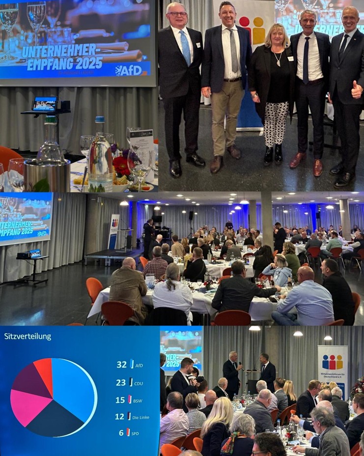 Die AfD-Fraktion in Baden-Württemberg lädt unter dem Motto "Zukunft gestalten" am 05. Juni 2025 zum Unternehmertag in den Landtag von Baden-Württemberg (Konrad-Adenauer-Str. 3, 70173 Stuttgart). Das Programm und die Referenten finden Sie hier. Anmeldungen senden Sie bitte an: veranstaltungen@afd-fraktion-bw.deMittelstandsforum für Deutschland wählt neuen BuVo 06.04.2025
