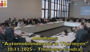 Das Mittelstandsforum für Deutschland e.V. (MSF) konnte am 28.11.2025 zur Anhörung "Automobilindustrie in Thüringen" zwei ausgewiesene Experten entsenden. Hier finden Sie die komplette Anhörung . Ab 2:45:00 wird das MSF mit in die Anhörung eingebunden. Hier finden Sie einen aussagekräftigen Auszug der die Wissensdiskrepanz zwischen "Fachpolitikern" und praxisnahen Fachleuten des MSF aufzeigt.MSF begrüßt Einladung von AfD-Vertretern 29.11.2025