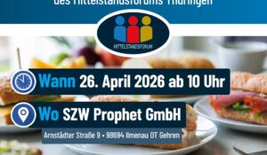 Mit dem Ziel, den wirtschaftspolitischen Dialog im Freistaat zu stärken und Unternehmer zu vernetzen, lädt das Mittelstandsforum für Deutschland e. V. (MSF) zum ersten Unternehmerfrühstück in Thüringen ein. Im Mittelpunkt der Veranstaltung steht der persönliche Austausch mit dem Thüringer Repräsentanten des MSF, dem Nordhäuser AfD-Landtagsabgeordneten Jörg Prophet…